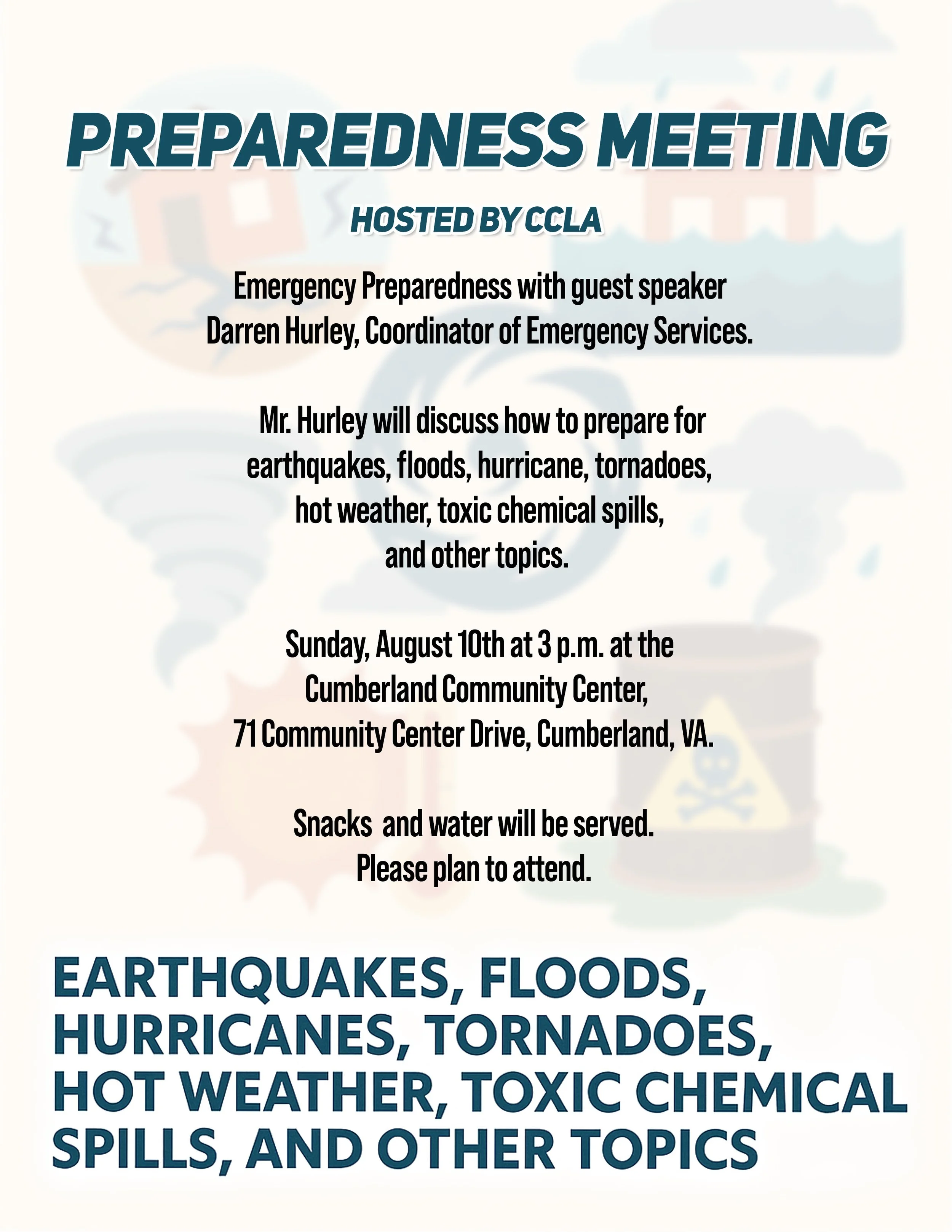 CCLA is continuing to hold our Community Townhall meetings every other month. Depending on activities concerning the proposed landfill, meetings at other dates and times may be scheduled. This will be done on a case-by-case basis.